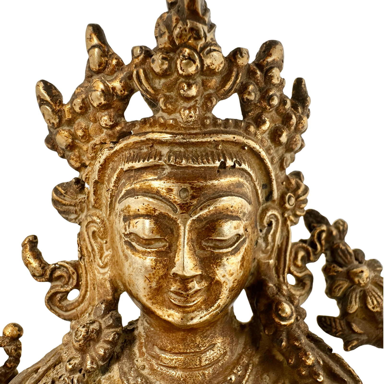 Vergoldete Kupferstatue der Weissen Tara in antikem Stil