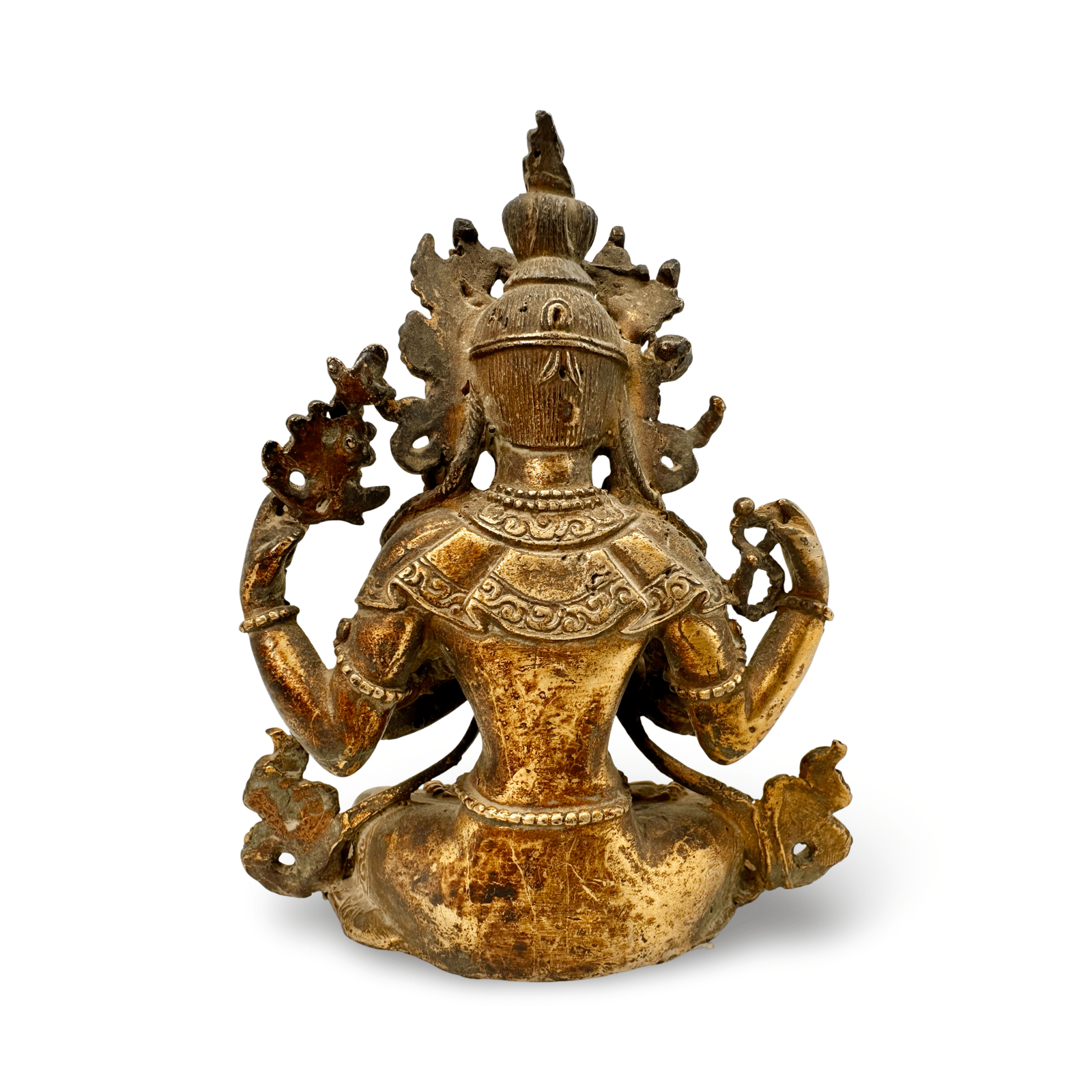 Vergoldete Kupferstatue des Avalokiteshvara in antikem Stil - Atelier Tibet