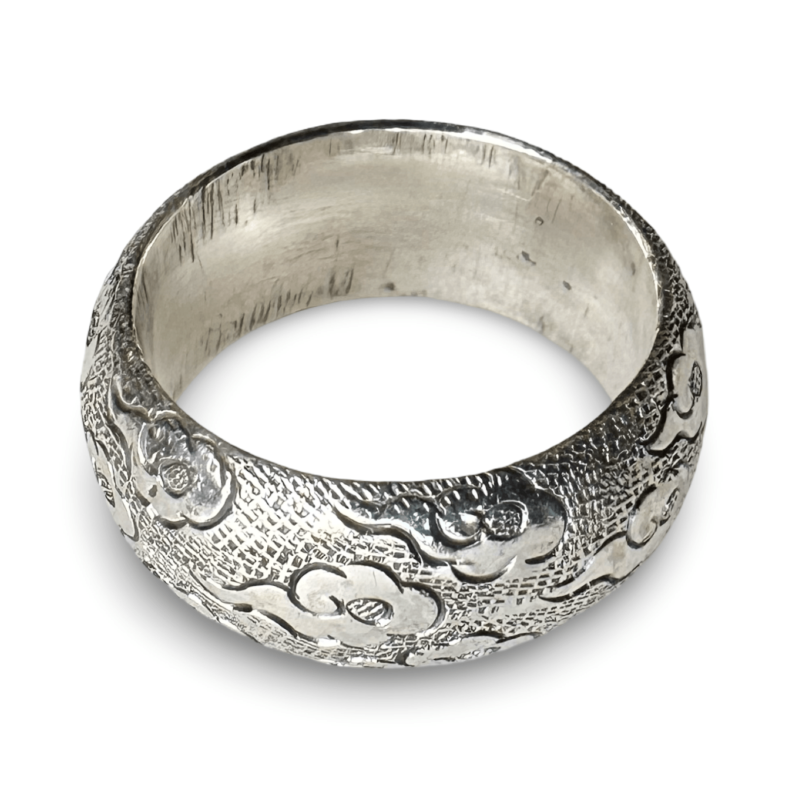 Breiter Silberring mit Tibetischem Wolkenmotiv