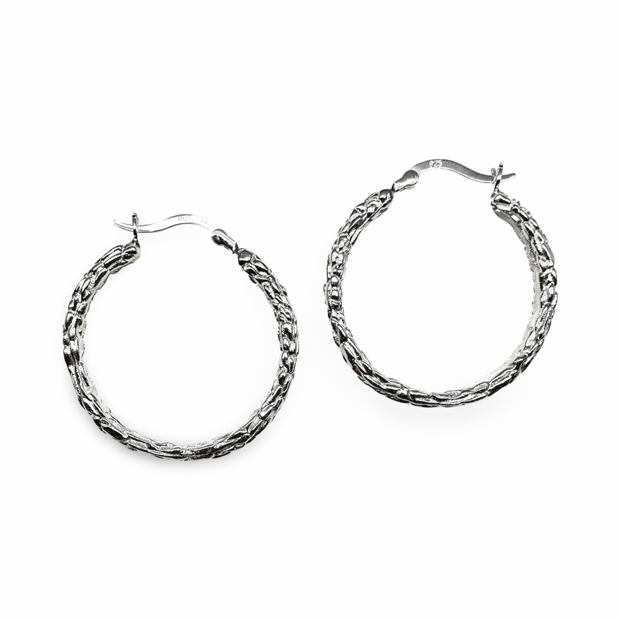 Markante Silber-Kreolen mit organischer Struktur (30 mm)