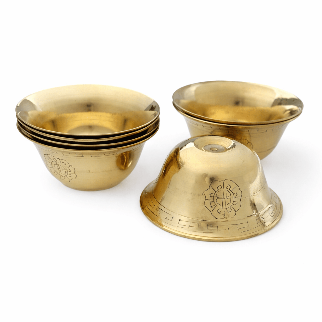 Auf einem tibetischen Altar werden sieben «Chöpa» (མཆོད་པ་) Wasserschalen traditionell als Opfergabe verwendet. Sie symbolisieren Reinheit und Grosszügigkeit und sind Ausdruck von Respekt und Hingabe an die buddhistischen Lehren und an die verschiedenen Gottheiten, die in den tibetischen Ritualen verehrt werden.