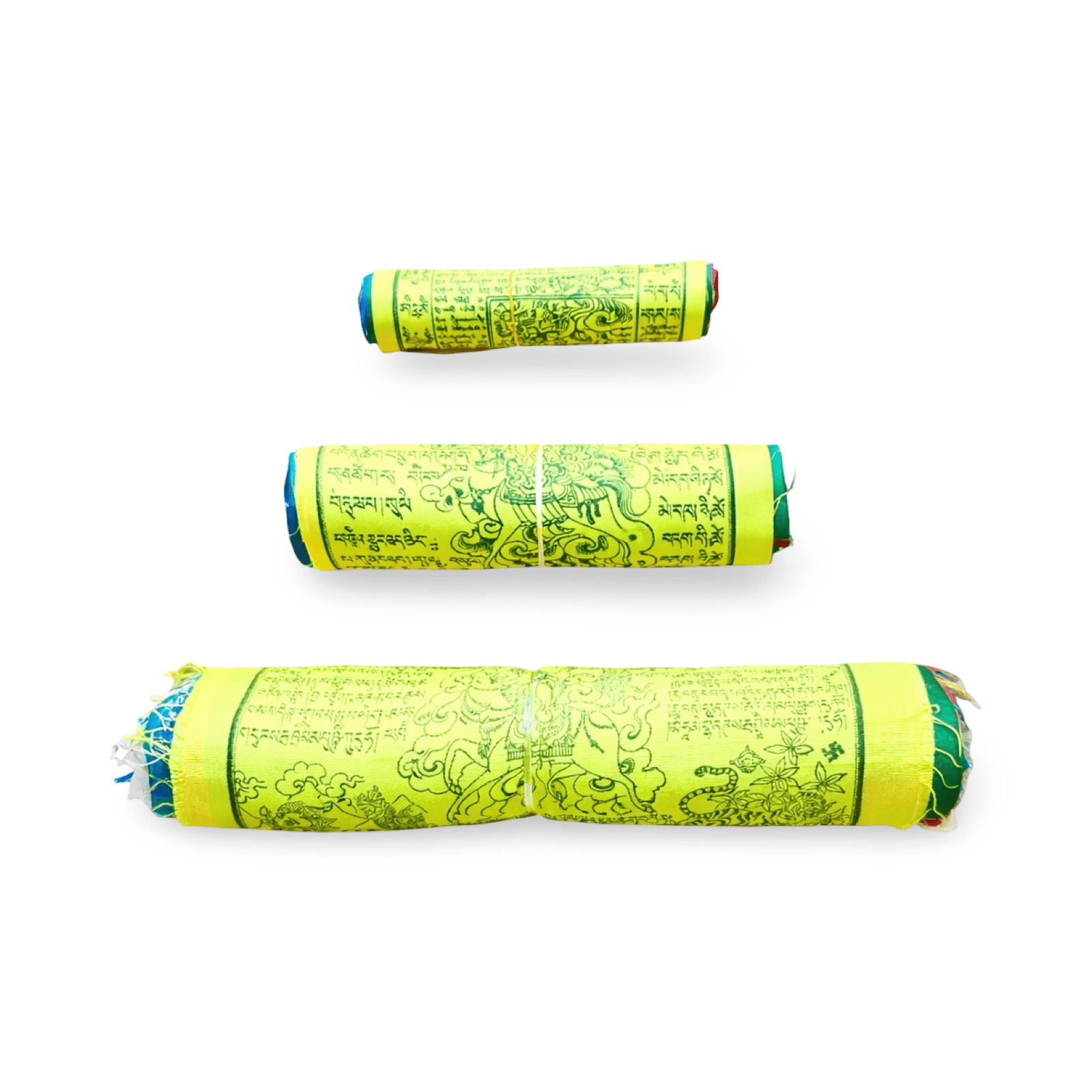 Die günstigere, ungesäumte Qualität der Gebetsfahnen. Diese wird rascher von den Elementen in ihren wilden, authentischen Zustand versetzt. Material: Polyester bzw. Polyester-Baumwoll-Gemisch. Handgefertigt in Nepal.