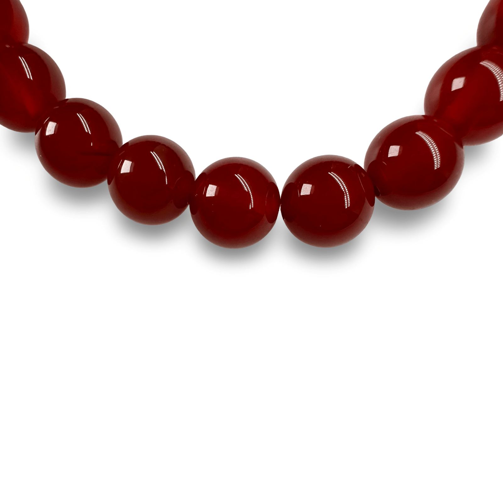Elastisches Mala-Armband mit Karneol Perlen mit einem Durchmesser von 8 mm in einem satten dunklen, orangen Farbton. Das Armband wird im Atelier Tibet in Zürich handgefertigt und ist in verschiedenen Grössen erhältlich.