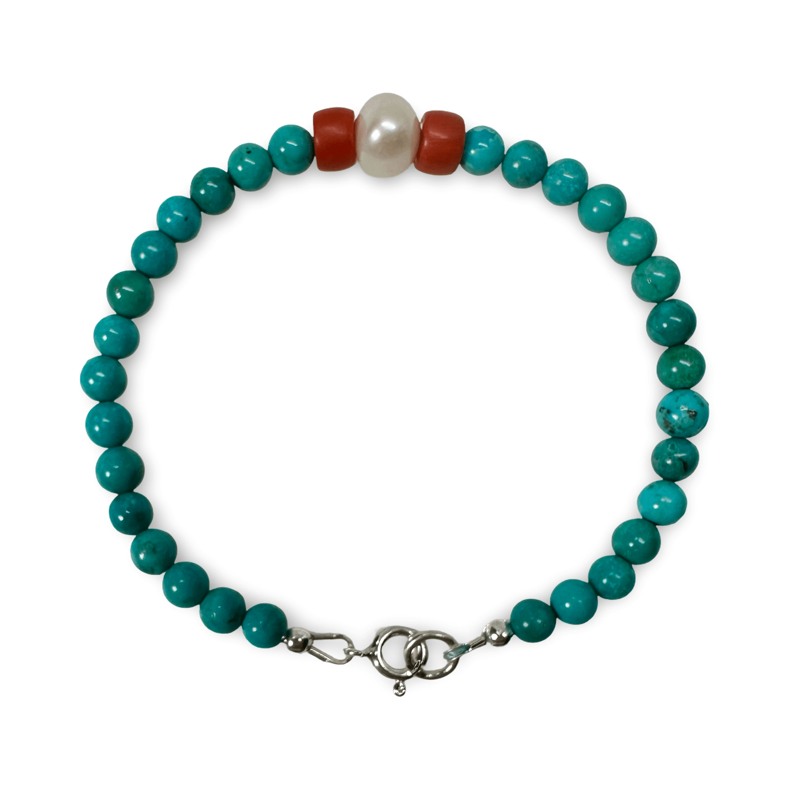 Kette und Armband aus Türkis, alter Koralle und einer Perle