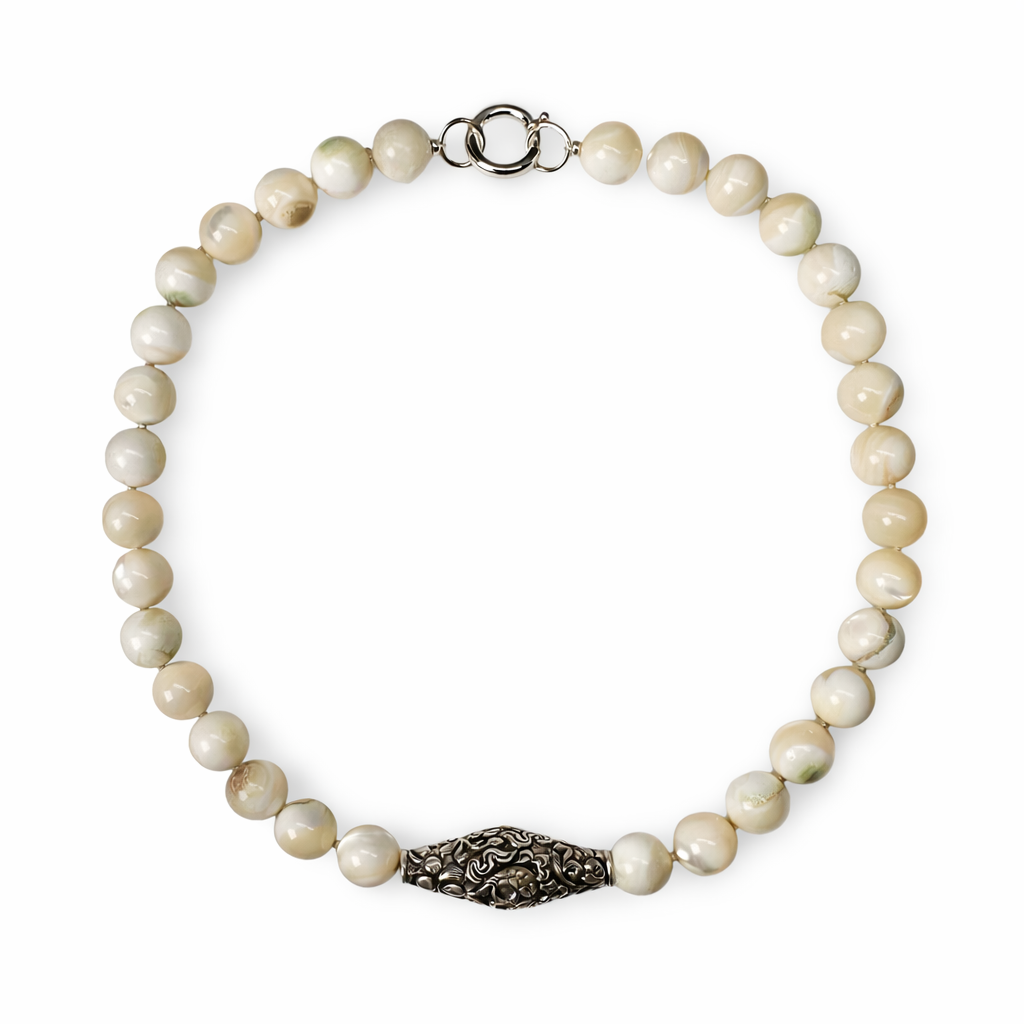 Statement mother-of-pearl necklace with Tibetan silver bead
