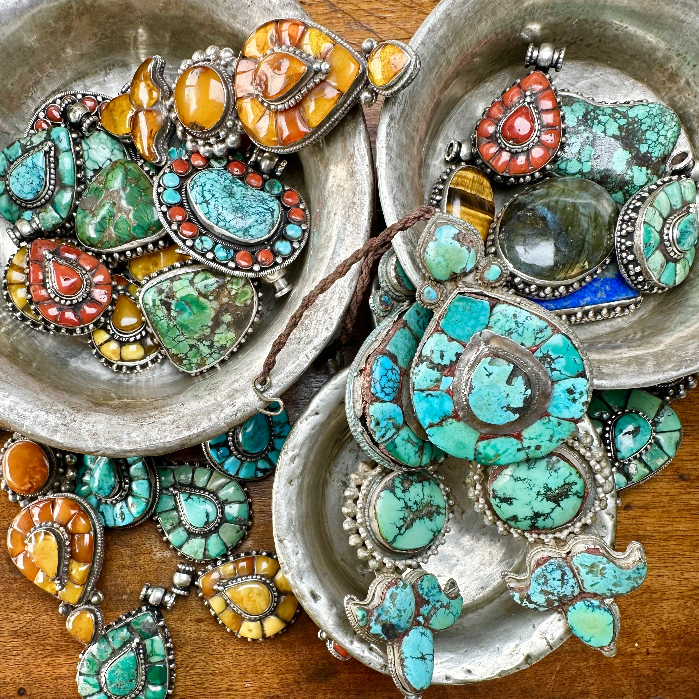 It is our aim to promote craftsmanship in the Himalayas and to keep the culture alive. That is why we mainly sell newly manufactured products. Occasionally, however, older pieces of jewelry that already have a history also find their way to us. We define the term "antique" broadly and use it for everything that is not from our century. This is also because exact dating is often difficult. And sometimes we reassemble old stones with patina so that they shine anew on a robust thread in old freshness.