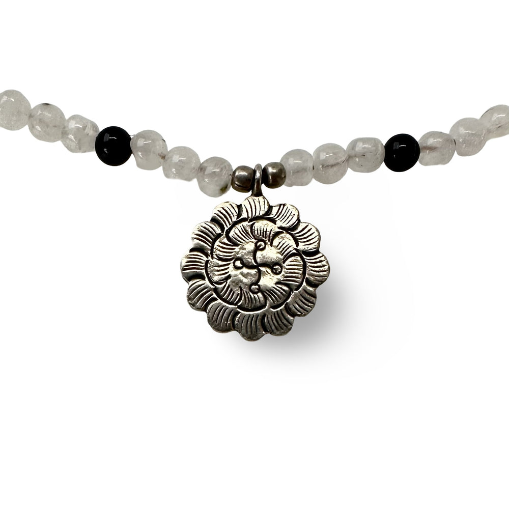 Moonstone and tourmaline necklace with lotus pendant