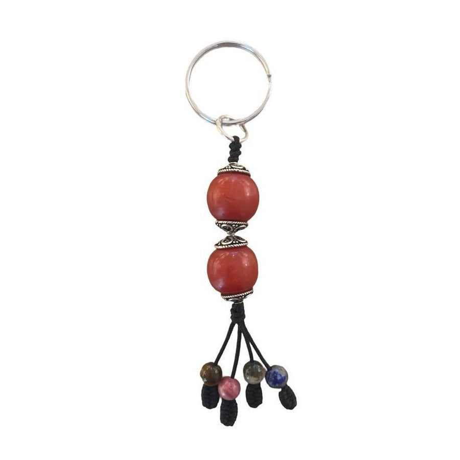 We use various precious and semi-precious stones and corals for our key rings, some of which come from old Tibetan jewelry. We also use traditional silver beads from the Himalayas in various shapes and sizes. Each pendant is unique and tells its own story.