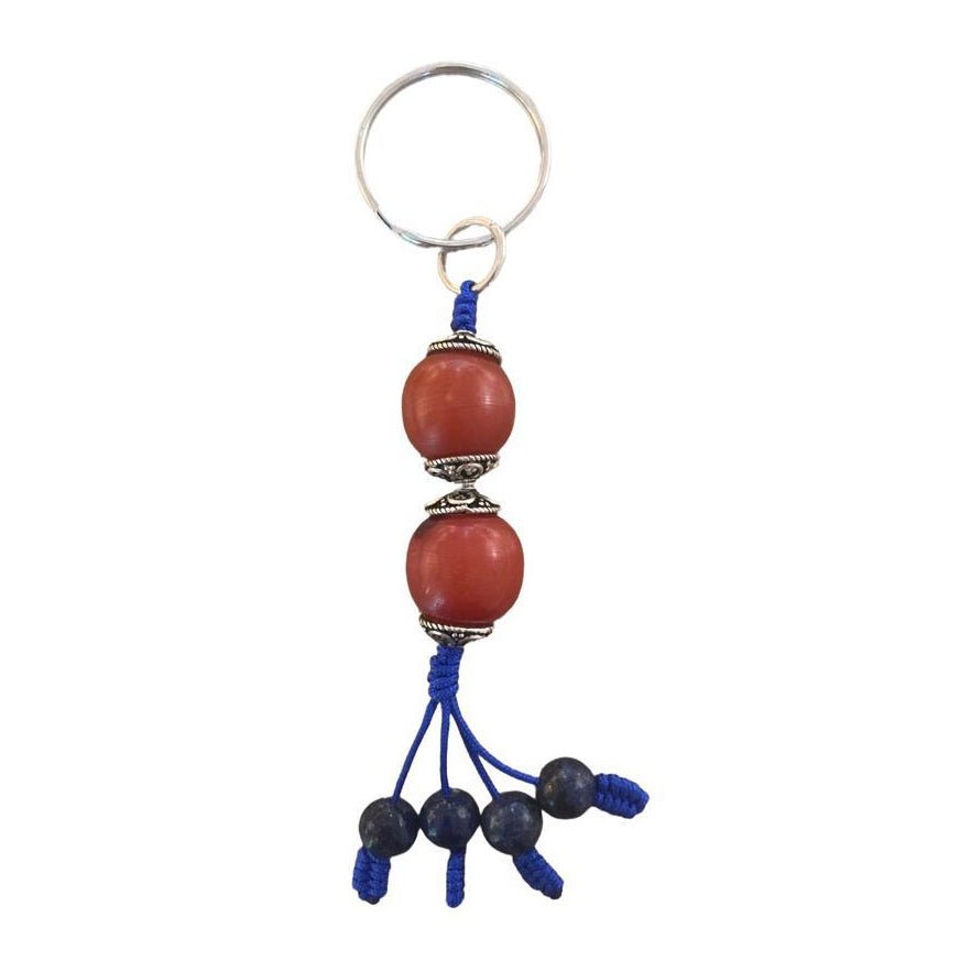 We use various precious and semi-precious stones and corals for our key rings, some of which come from old Tibetan jewelry. We also use traditional silver beads from the Himalayas in various shapes and sizes. Each pendant is unique and tells its own story.
