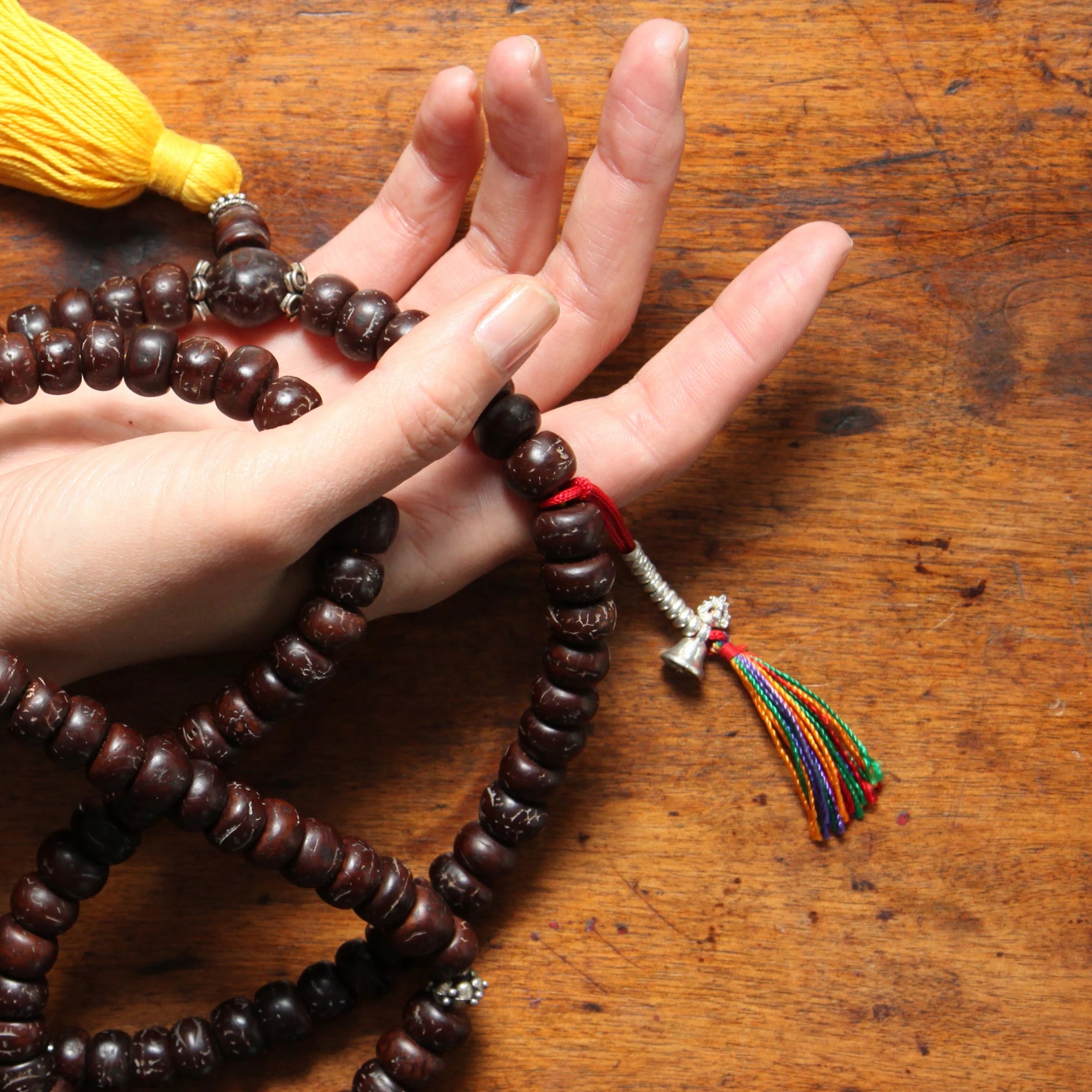 Mala counters (also known as counting beads or mala counters) are small pendants or clips that are attached to a mala to keep track of the number of prayer recitations. They usually consist of two strings with 10 small beads each and often end with a pendant, such as a vajra or dorje. They are a practical and spiritually significant tool that promotes concentration and helps to sharpen awareness during meditation.