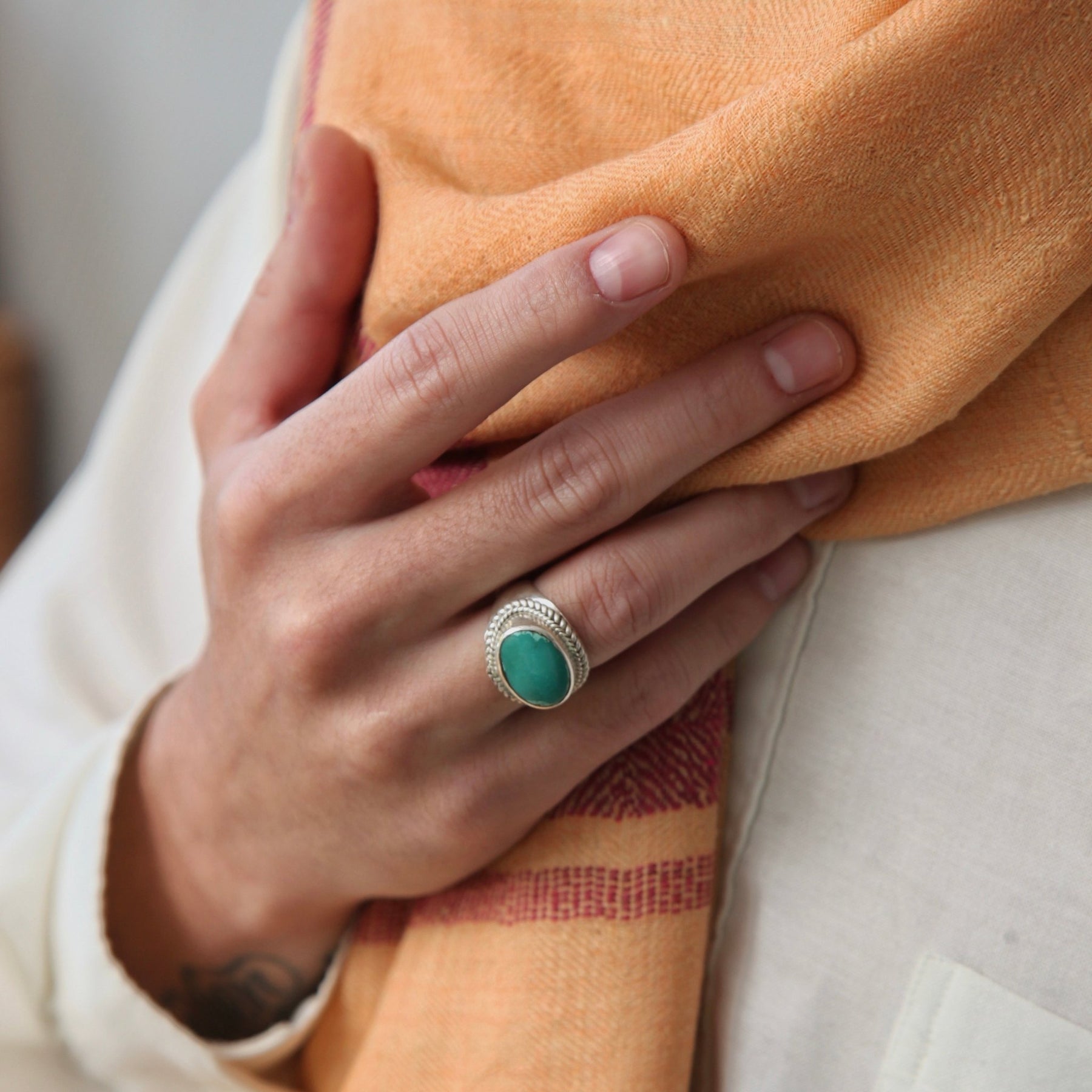 Characteristic turquoise silver ring, which we have produced exclusively for our Heritage Collection in a Tibetan silversmith's workshop in Nepal based on a traditional model.