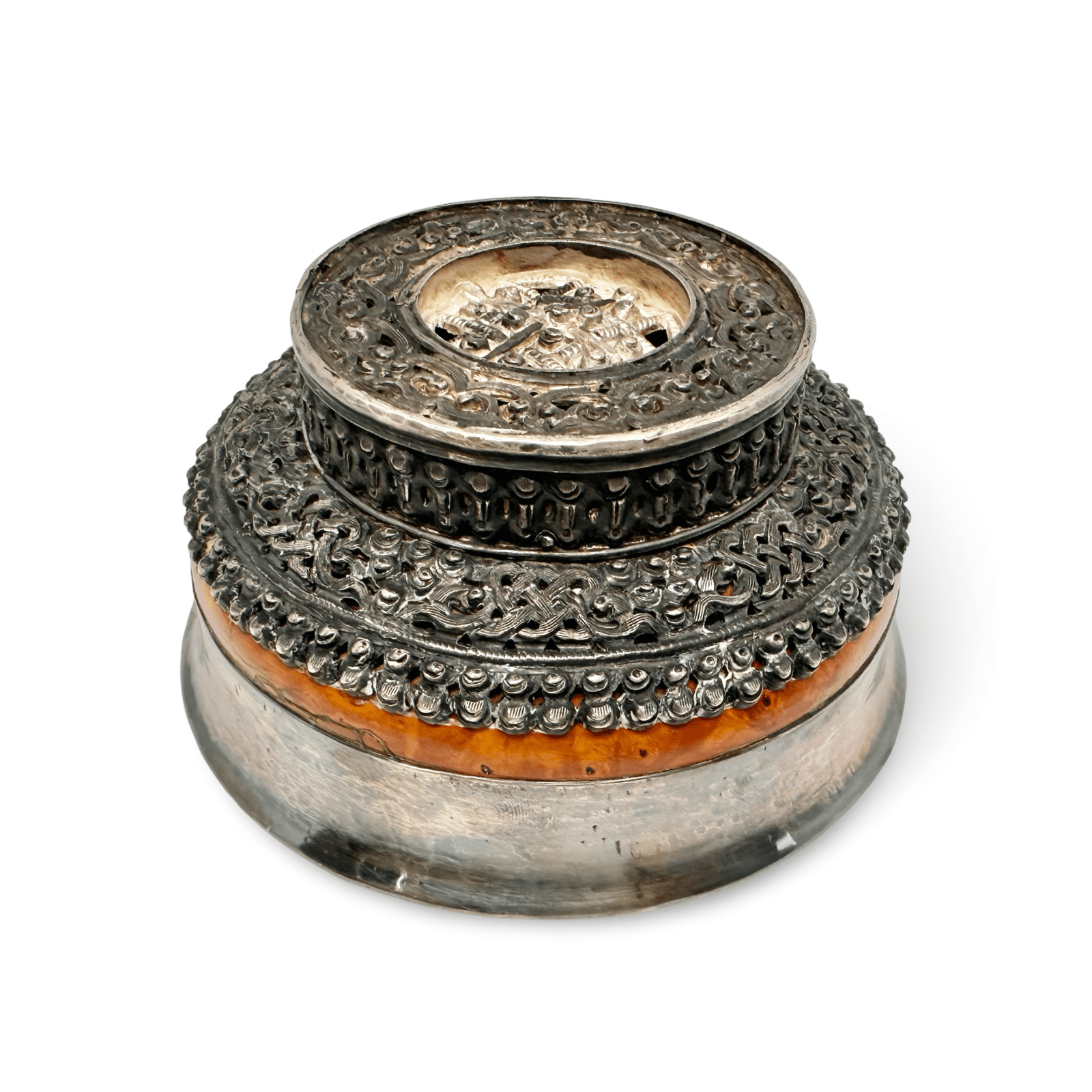 Tibetische Butterteeschale – Silber und Holz - Atelier Tibet