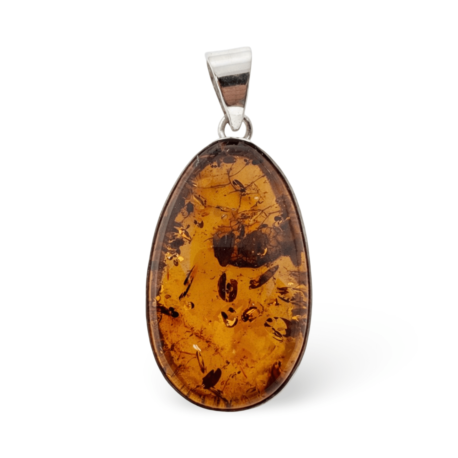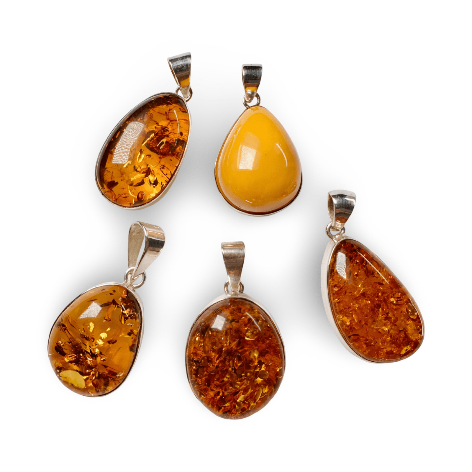 Superbes pendentifs en ambre sertis d'argent, disponibles en différentes couleurs et formes. La bélière a un diamètre d'au moins 7 mm. Chaque pièce est unique.
