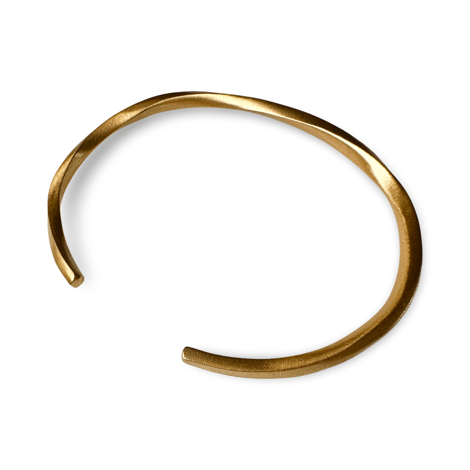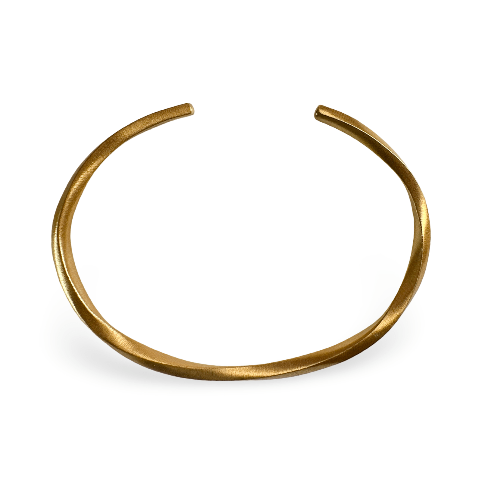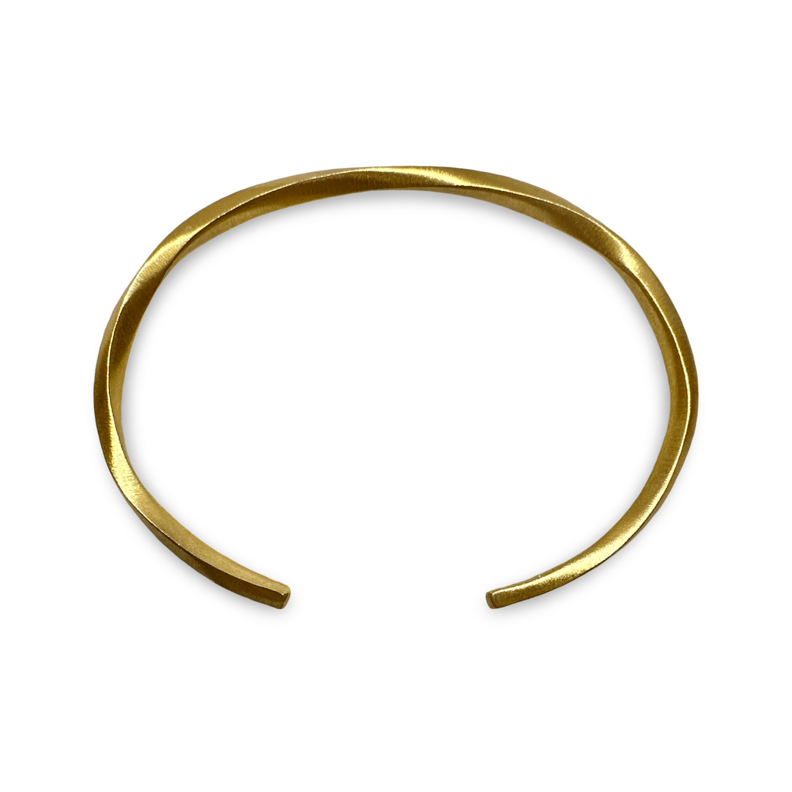 Ce bracelet jonc simple et élégant est réalisé en argent plaqué or aux reflets chauds et chatoyants, avec une finition mate légèrement brossée. Sa conception ouverte permet de l'ajuster à toutes les tailles de poignet. Avec un diamètre intérieur d'environ 62 mm x 46 mm , il convient à différentes morphologies.