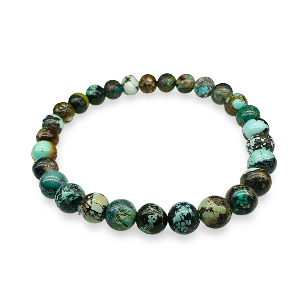 La turquoise est une pierre précieuse bleu vif à verdâtre qui joue un rôle central dans les bijoux tibétains. Traditionnellement, il est souvent traité avec de l'ambre, du corail et de l'argent. Dans la culture tibétaine, la turquoise représente la protection, la prospérité et la force spirituelle. Il est considéré comme un symbole du lien entre le ciel et la terre. Les croyants portent souvent la turquoise comme amulette ou dans le chapelet pour attirer la chance et l'énergie positive. Les bijoux sont généralement fabriqués minutieusement à la main, donnant à chaque pièce une touche individuelle et étant profondément enracinés dans la tradition tibétaine.