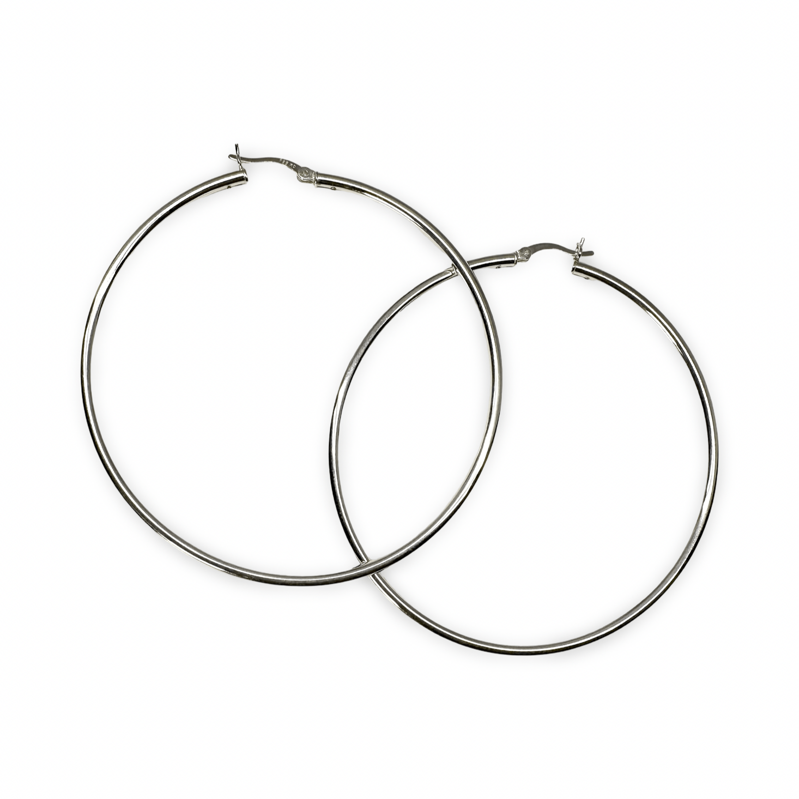 Très grandes créoles classiques en argent d'un diamètre de 70 mm.