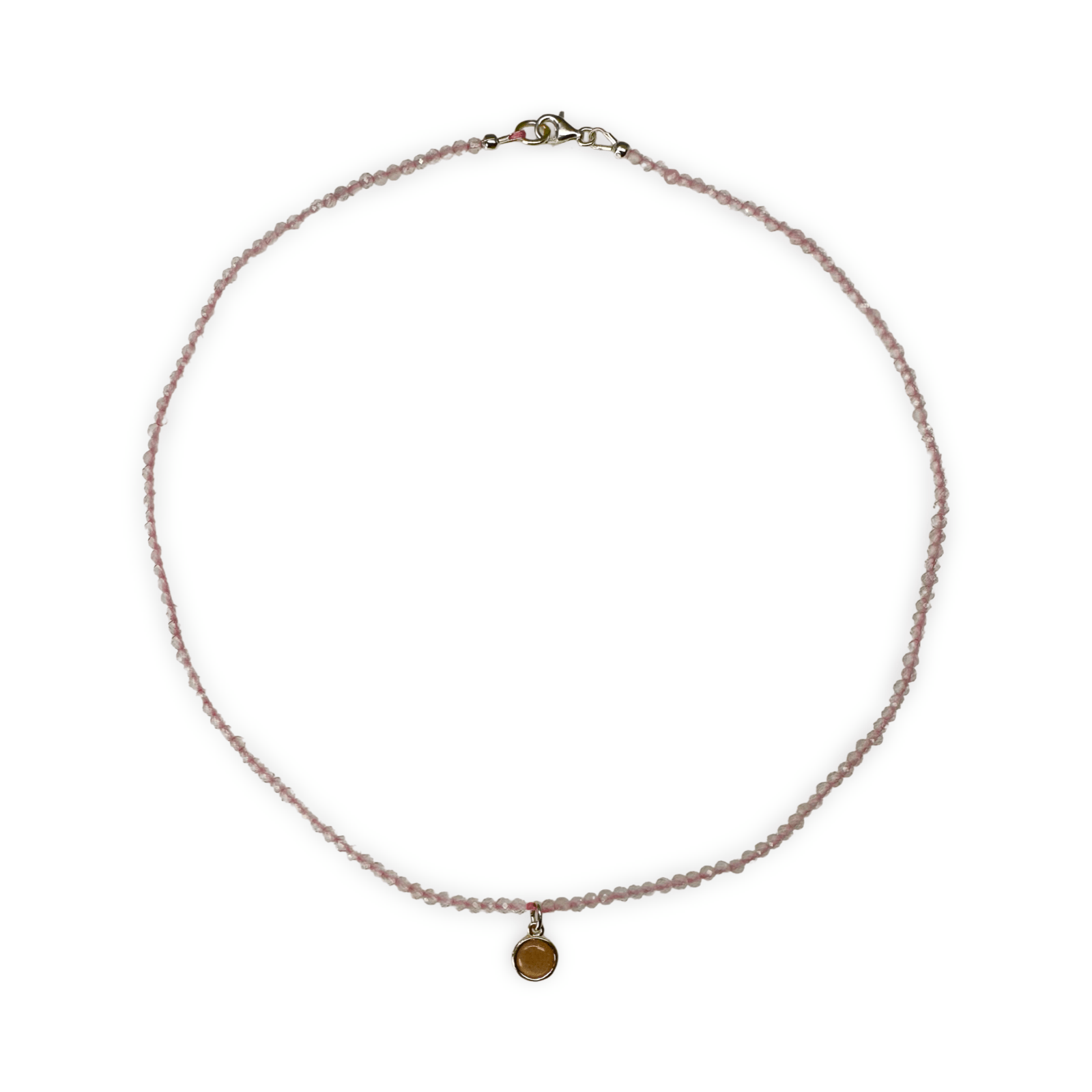 Collier délicat en quartz rose avec pendentif en pierre de lune