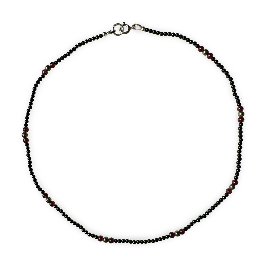 Zierliche Onyx - , Granat - und Pyrit - Halskette - Atelier Tibet
