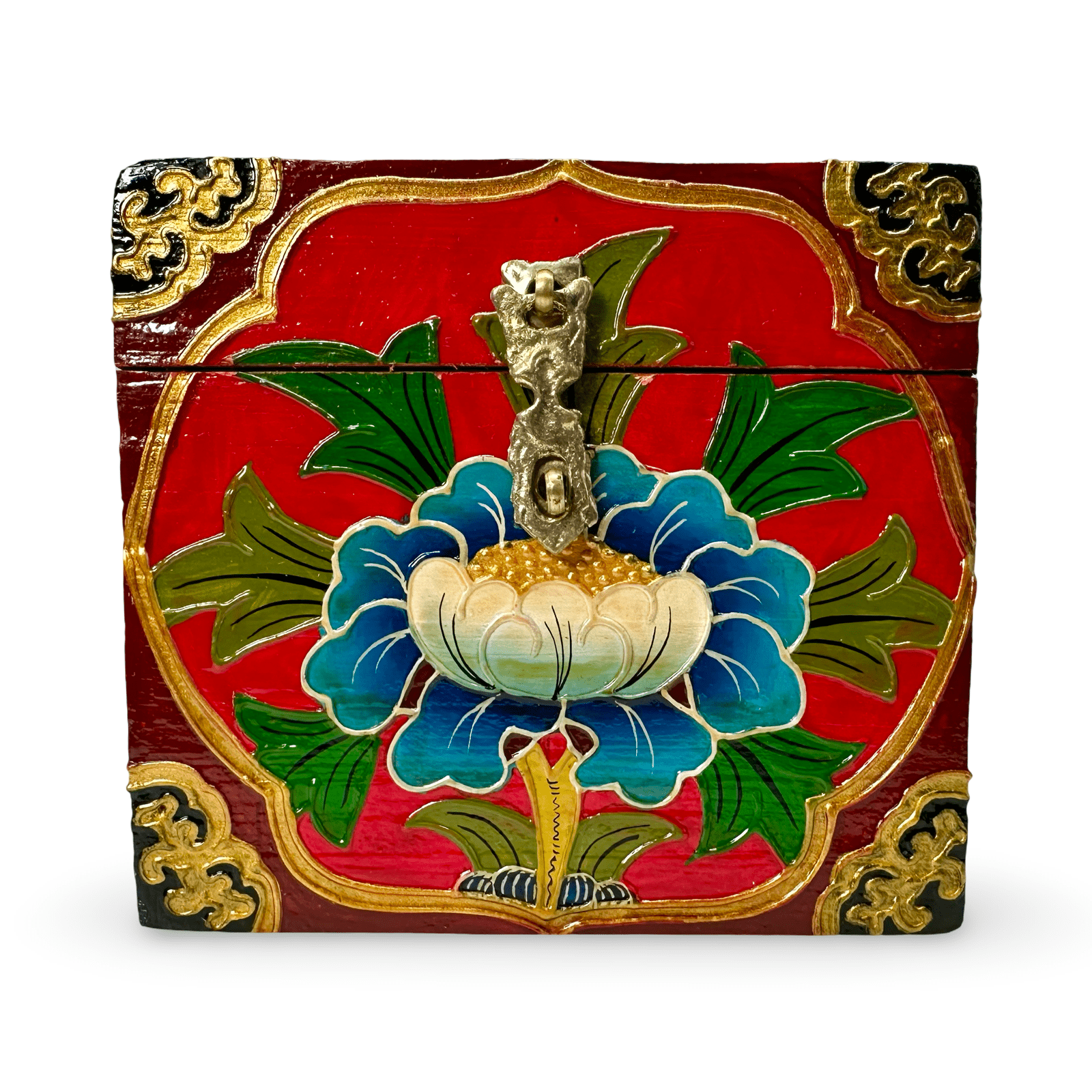 Nos petits coffres au trésor sont fabriqués à la main par des artisans tibétains vivant en exil au Népal. Ils sont décorés de motifs tibétains traditionnels colorés comme Dragon peint, tigre, lion des neiges ou Cheppu. Le lieu de rangement idéal pour les bijoux et les trésors personnels.