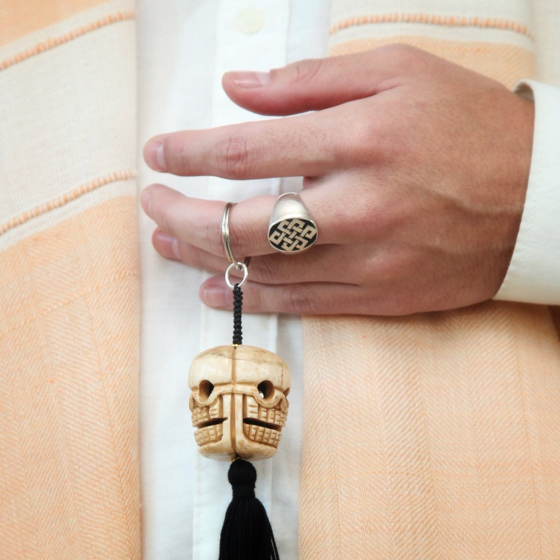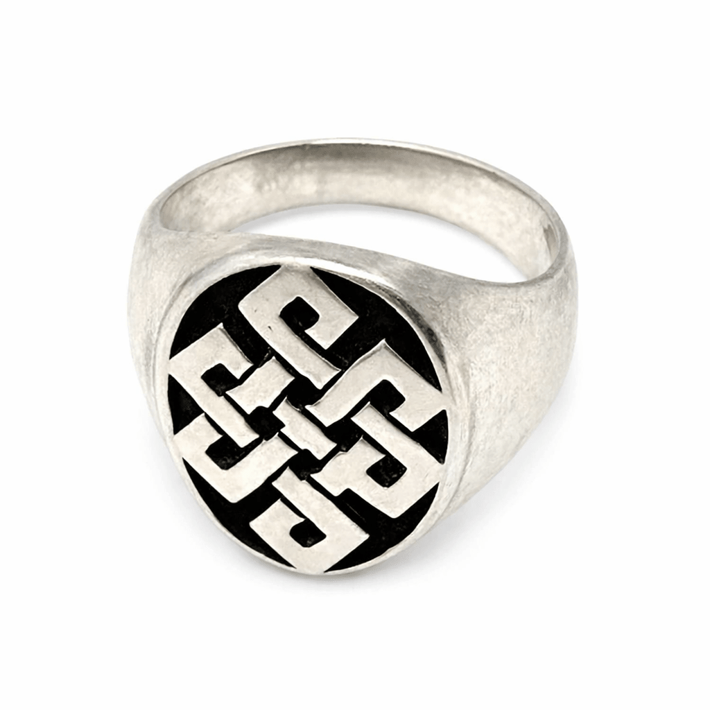 Bague en argent massif avec un nœud sans fin traditionnel tibétain. Une des pièces de l'Atelier Tibet Heritage avec des motifs traditionnels tibétains. Forgé à la main dans un atelier traditionnel népalais.
