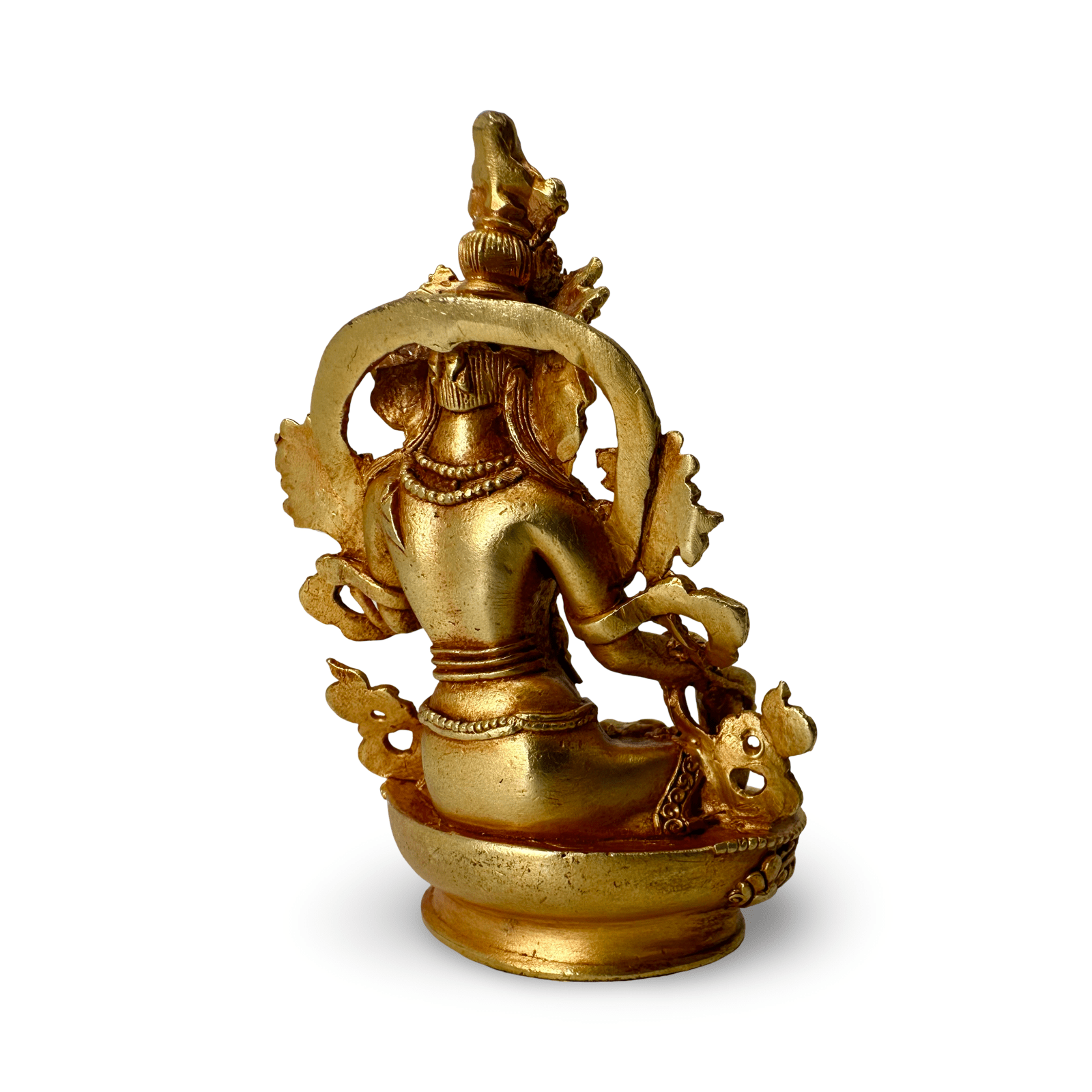 Cette statue de petit format de Tara Blanche est réalisée en cuivre massif et dorée avec une grande attention aux détails dans un atelier traditionnel au Népal.