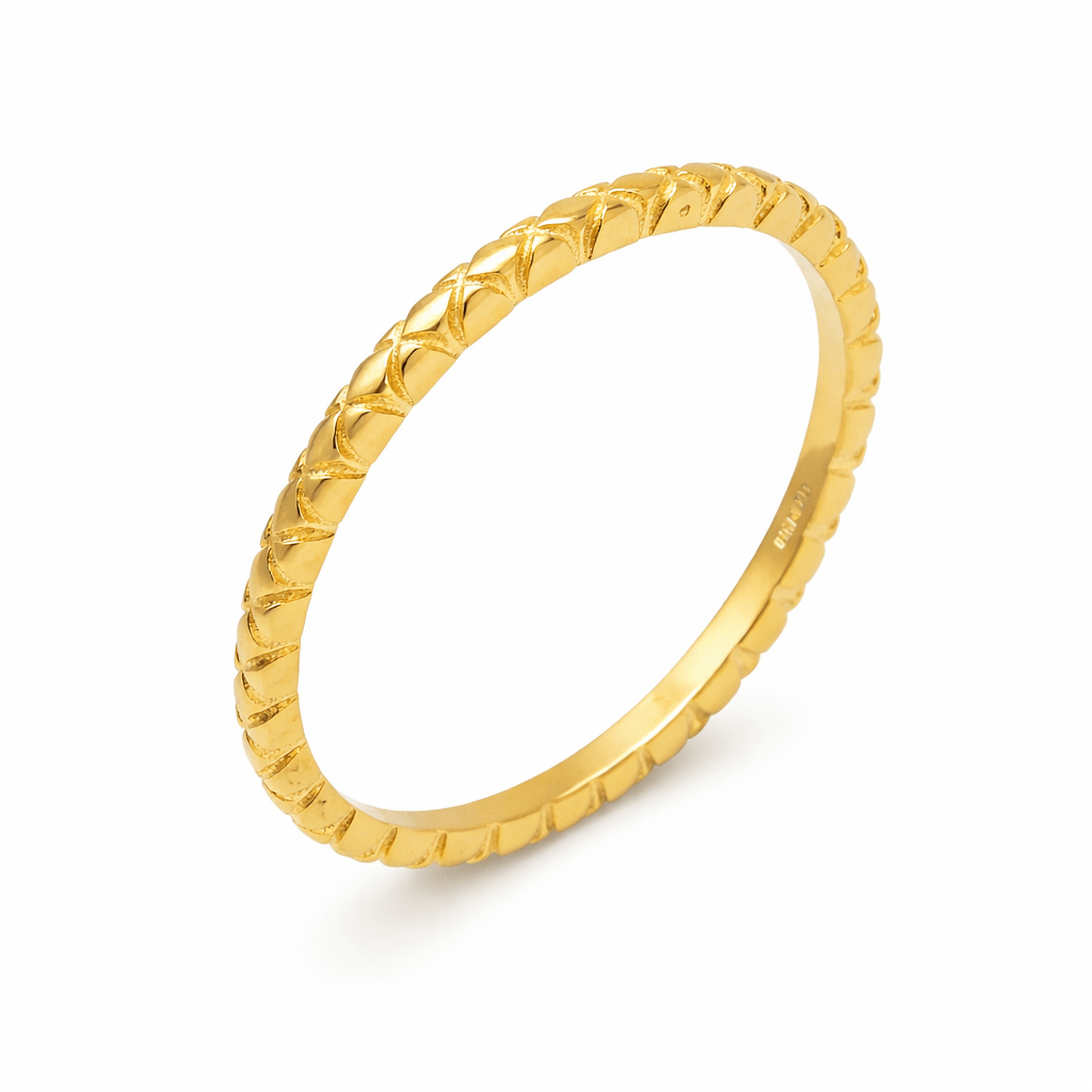 Bague en argent doré à l'or fin avec un motif nid d'abeille. Fabriqué en Inde. Disponible en différentes tailles.