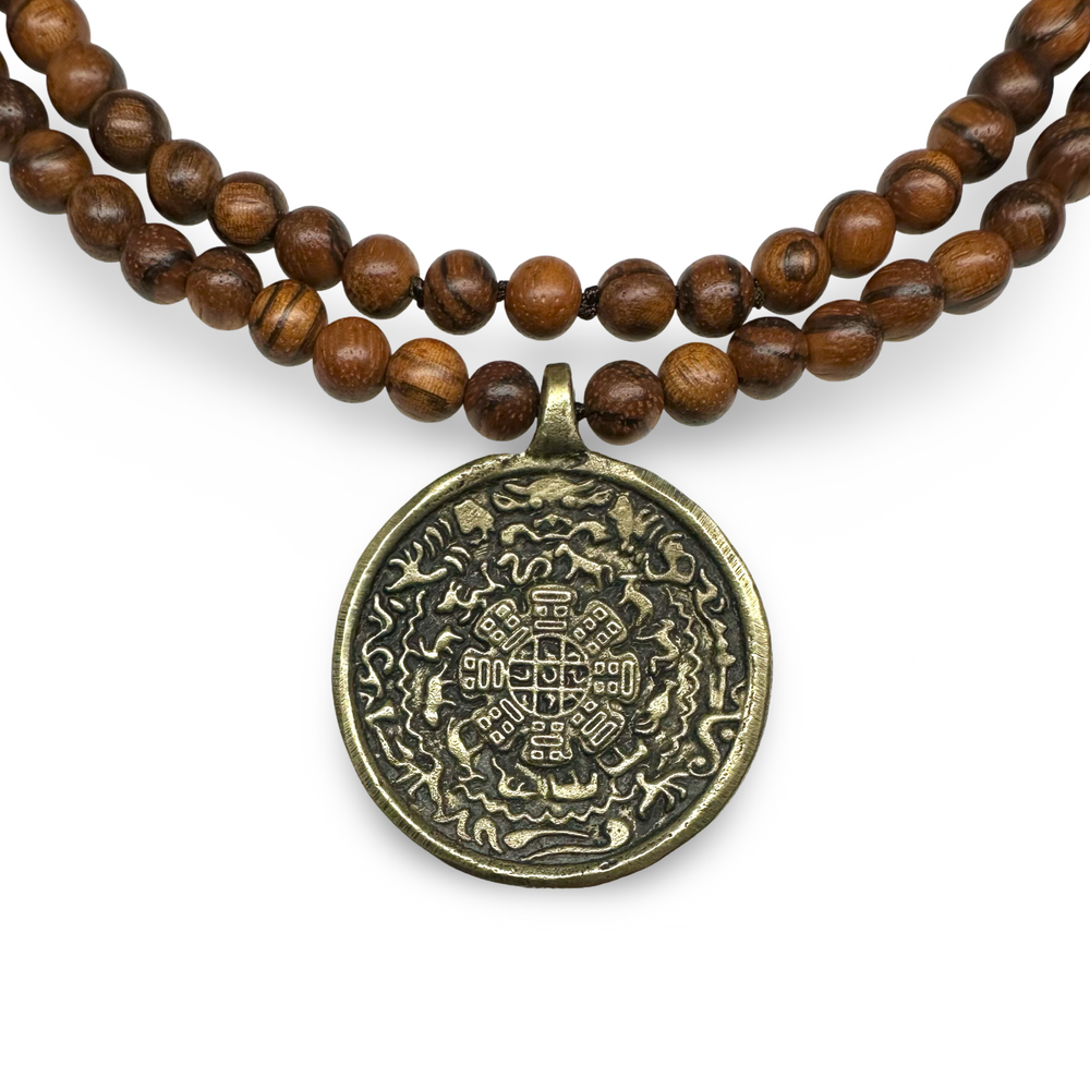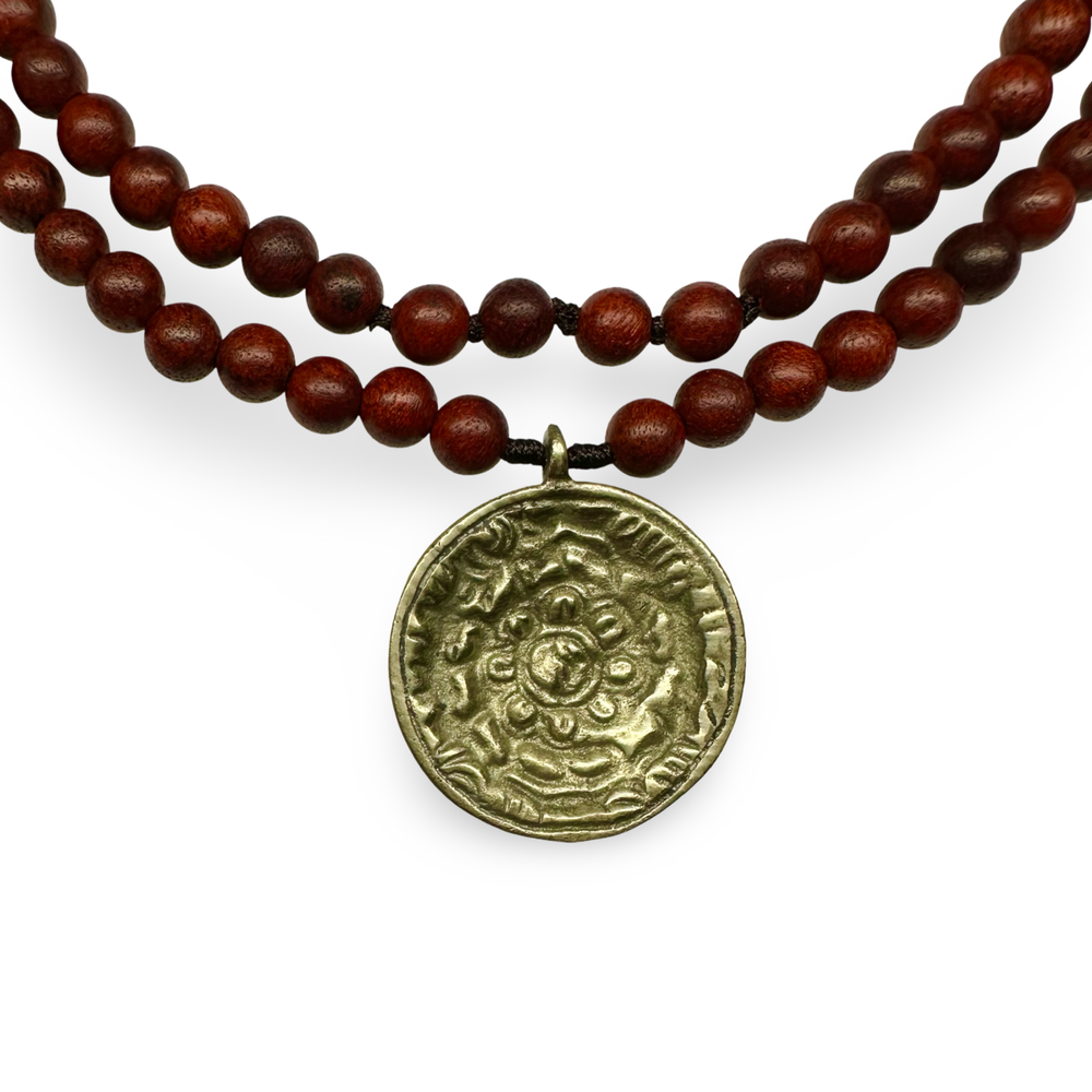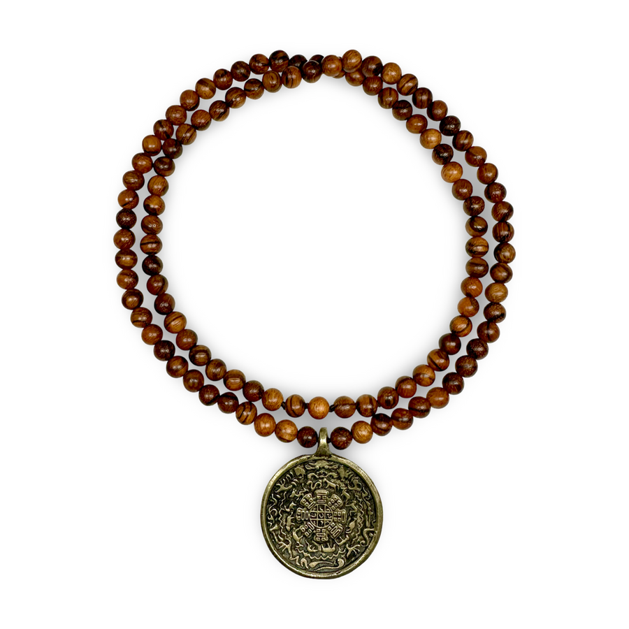I mala in legno rappresentano il radicamento, la vicinanza alla natura e la semplicità. Sono realizzati con legni diversi come il sandalo, il palissandro o l'ebano. Questi mala hanno un'energia calmante e promuovono la concentrazione e la calma, sono leggeri e comodi da indossare e sono adatti per la meditazione quotidiana e la pratica spirituale in movimento.