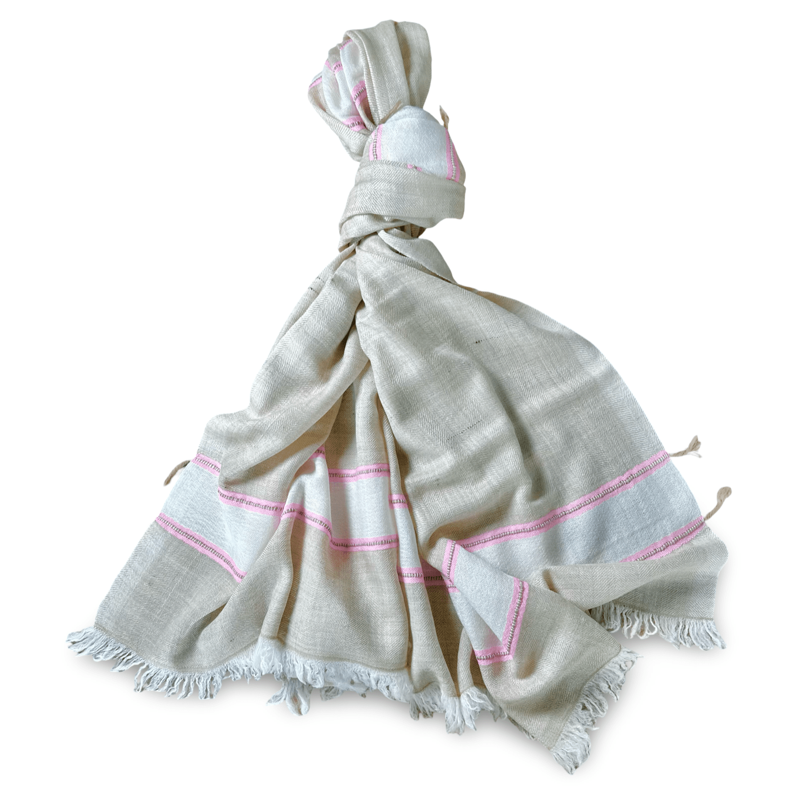 Himalaya Kaschmir Schal • 100% Pashmina • Beige & Pink
